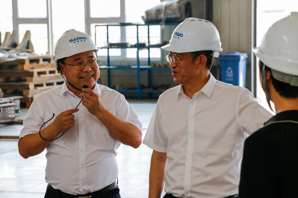 2023年8月17日,秦皇島市市長、黨組書記丁偉,副市長郭建平帶領(lǐng)市、區(qū)領(lǐng)導(dǎo)團隊,蒞臨秦皇島曼國裝備科技有限公司調(diào)研指導(dǎo)工作。08-17